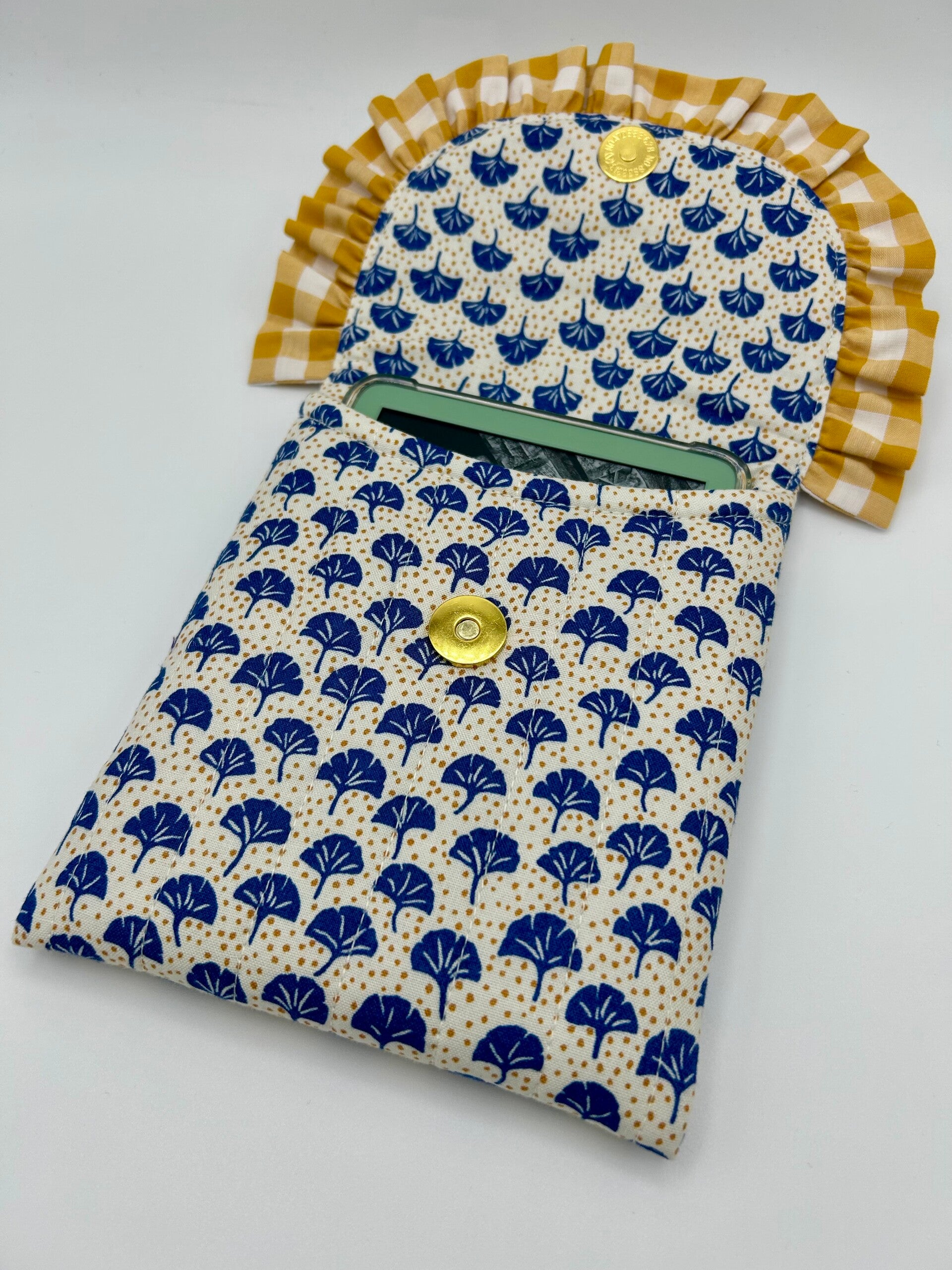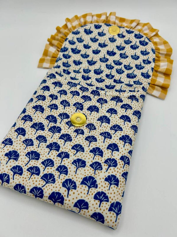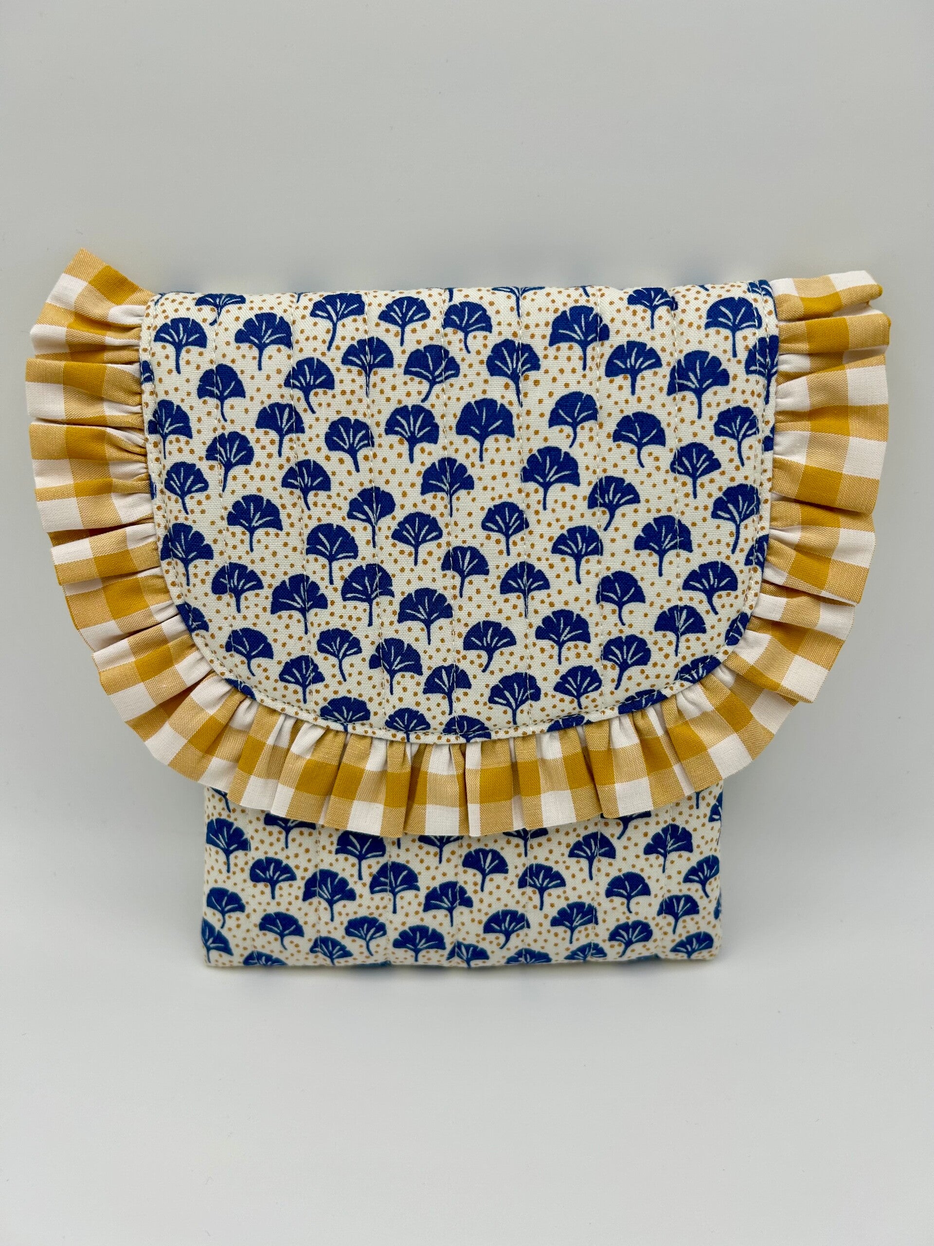 Made in gorgeous floral Liberty of London fabric complemented by beautiful gingham ruffle. Magnetic fastening will keep your Kindle secure in place.