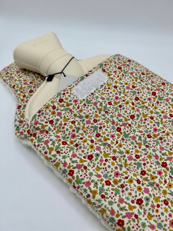 Hand crafted from the plushest bouclé fabric. My hot water bottle sleeves have a fluffy feel and soft texture on one side and a gorgeous floral cotton design on the other. They come complete with a 1.7L rubber hot water bottle, designed to keep you warm and cosy or make the perfect stylish gift...All products are handmade by Emilia at Ma.Len Studio.