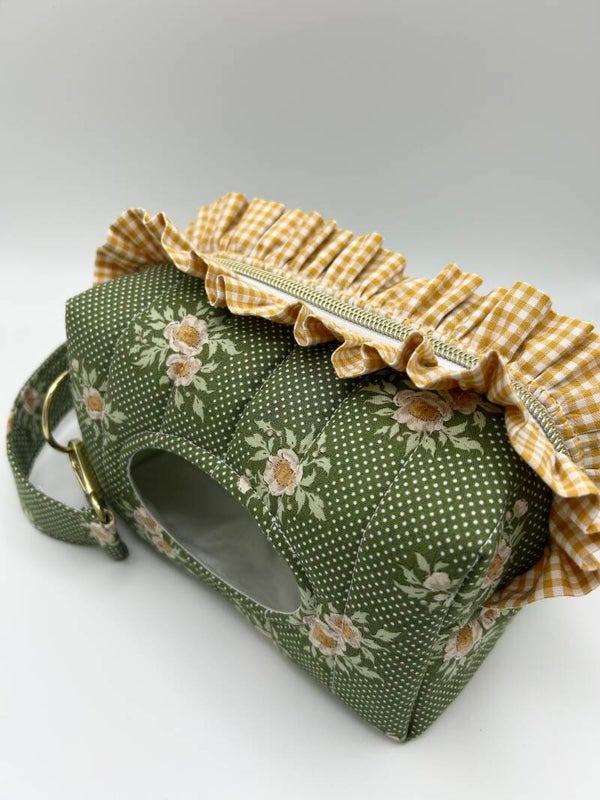 Make nappy changes easier than ever with these beautifully designed nappy/baby wipe bags — the perfect essential for every parent on the go. Created to keep you organised, this compact yet roomy pouch fits nappies, wipes, creams, and all the little extras you need for quick, stress-free changes anywhere. A must-have for new mums, made in gorgeous floral print on a green background complemented by beautiful gingham ruffle. This bag is fully lined with a water resistant material.