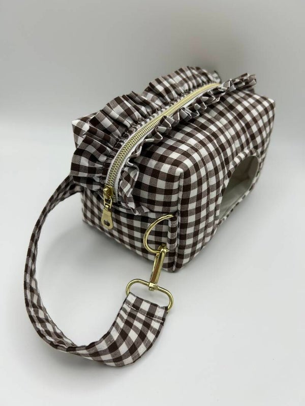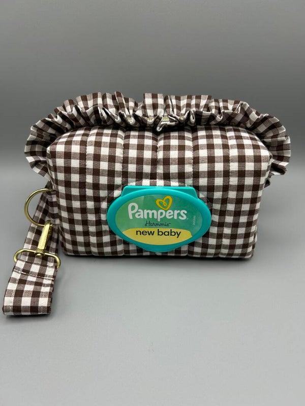 Chocolate Gingham Nappy Pouch